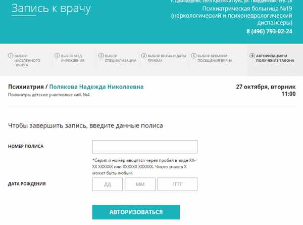 указанной в паспорте), ФИО и времени приёма лечащего врача, а также записаться на