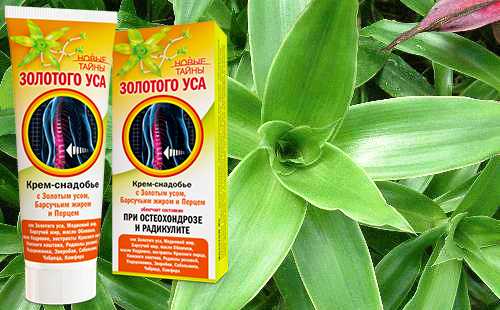 В аптеке можно приобрести готовые препараты на основе золотого уса. Чаще всего изготавливают средства для наружного применения — крем, мазь и бальзам. В составе препаратов могут быть такие натуральные компоненты: пчелиный яд, экстракт окопника, сабельник, живокость, конский каштан, муравьиная кислота, софора японская, чага и другие. Также выпускаются таблетки с вытяжкой золотого уса, зверобоя, сабельника, корня лопуха, коры ивы белой.