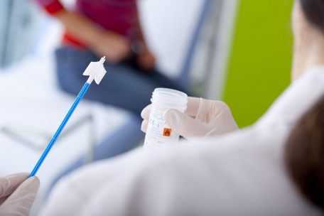 Цитологическое исследование. Физиологические изменения во время беременности практически не влияют на диагностическую точность цервикальной цитологии. Обязательный ПАП-мазок в I триместре беременности у многих женщин порой бывает первым и единственным за всю прожитую жизнь. Забор материала из цервикального канала следует проводить с использованием цервикальных щёточек с осторожностью. Используют традиционную (жидкостную) цитологию — клеточный материал помещают в ёмкость со специальным консервирующим раствором.