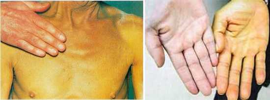 Рис. 4. Пожелтение кожных покровов — главный признак желтухи.