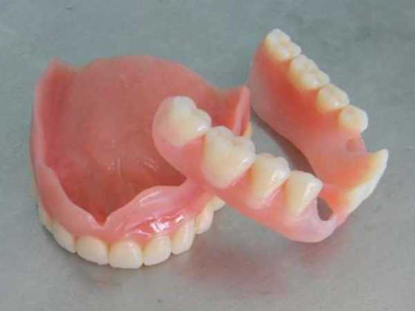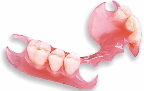 Частично съемные зубные протезы крепятся к десне и к оставшимся зубам. Их изготавливают из разных материалов.