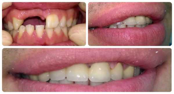 Если у пациента наблюдается дефицит десны в некоторых местах, то ее восполняют керамикой, которую красят в цвет мягких тканей.