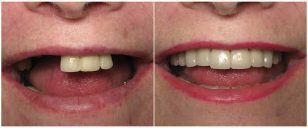 - В случаях, когда использование смежных зубов в качестве опоры для установки мостовидного протеза невозможно.