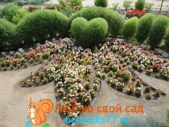 При посадке вдоль дорожек можно оформить аккуратный стриженый бордюр. Для создания миниатюрных кустиков производится прищипывание верхушек на стадии раннего развития кустов.